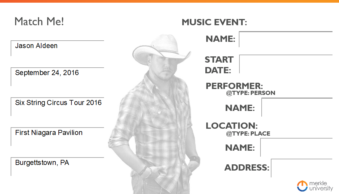 - Goal: Determine that you can mark up the content with the Schema.org vocabulary. Some things may make sense conceptually, but are not available within the vocabulary.